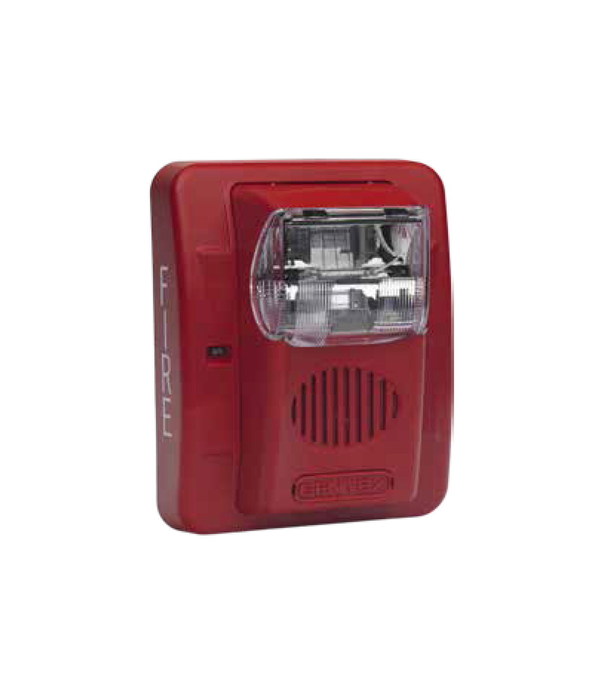 The Gentex GEC24-125/75WR Low-frequency Horn Strobe (red) offers dependable audible and visual alarms, a low current draw, and a minimum flash rate of 1 Hz regardless of input voltage.